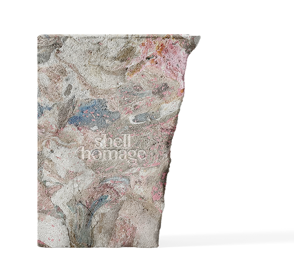 Shell Homage offers a meaningful and delightful experience to users, with a powerful message behind it. We fabricate biodegradable composite materials without the use of toxic chemicals, expanding possibilities for applications in product and industrial design, 3D printing, interior design, consumable goods, fashion, and jewelry design.